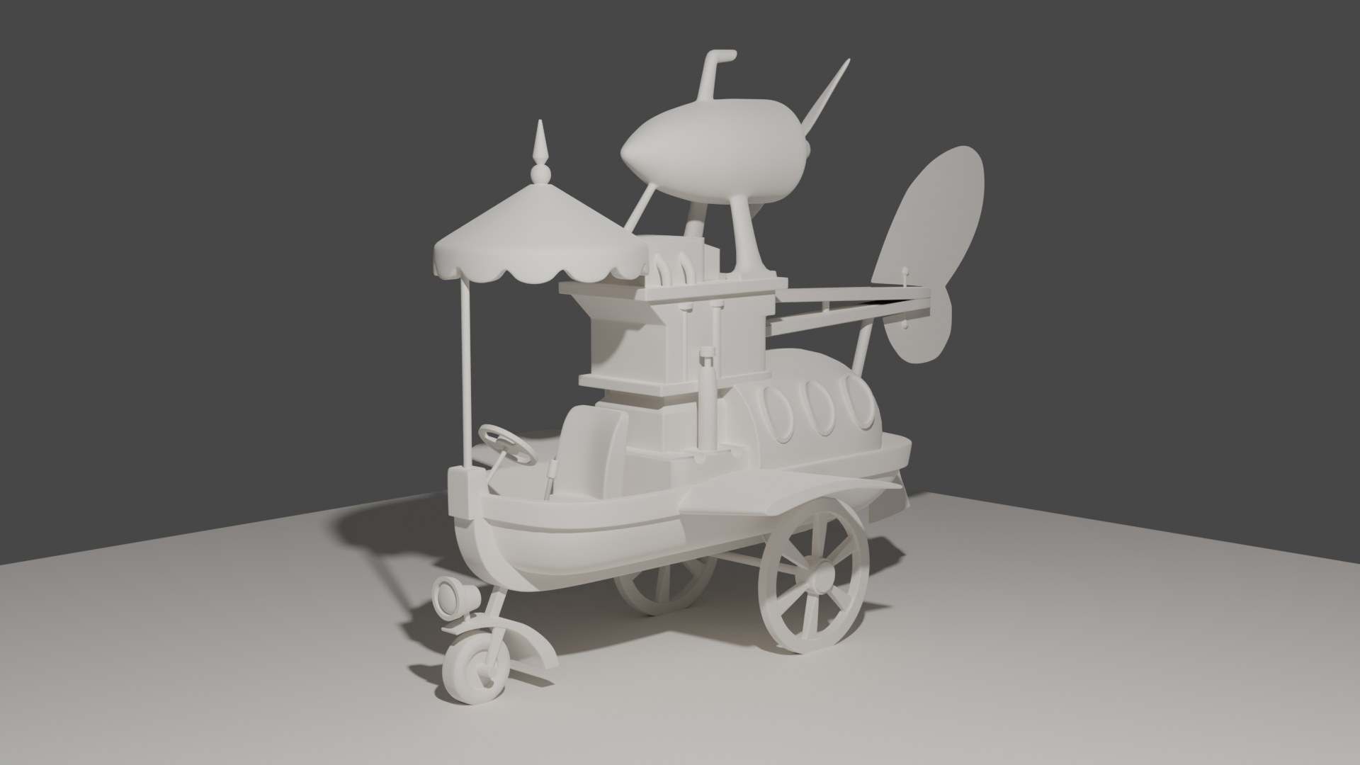 Here is a 3D model of the Convert-a-Car from the Hannah Barbara Cartoon, Wacky Races.