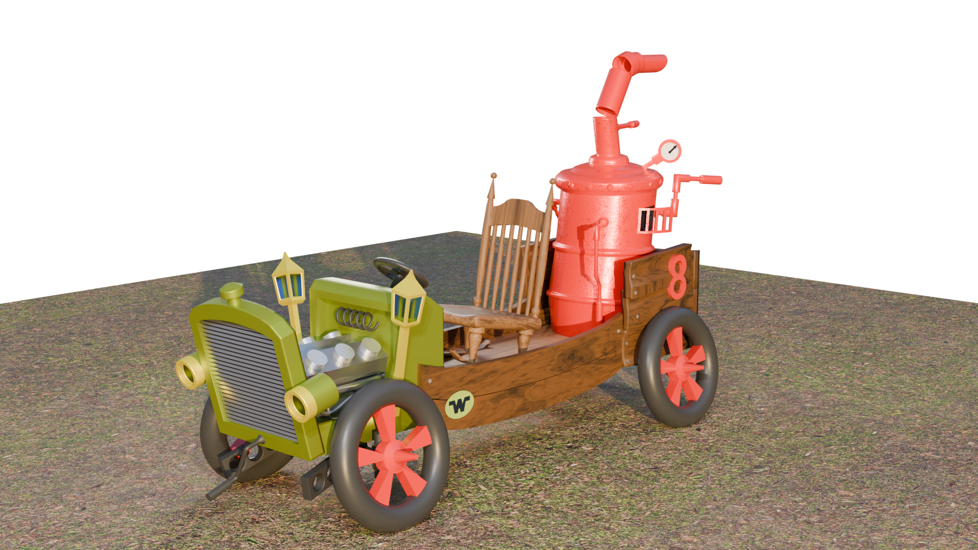 Here is a 3D model of the Crimson Haybaiiler from the Hannah Barbara Cartoon, Wacky Races.